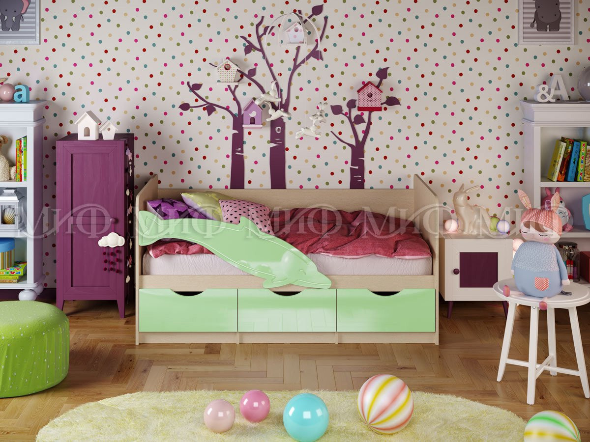 Кроватка Дельфин для Ваших детей благодаря небольшому размеру (длина 1,6м, 1.8м, 2,0 м) компактно разместится в детской комнате, и не займёт игровое пространство. Ящики под кроваткой скроют все коробочки и вещи длительного хранения. Особо радует родителей наличие бортика для безопасного сна. Корпус кроватки выполняется всегда в светлом цвете, а фасады можно выбрать. Даже внешне эта кровать выглядит очень уютной. А ограничительная планка делает ее еще и безопасной. Выбирайте любой цвет фасада для создания гармоничного интерьера.
