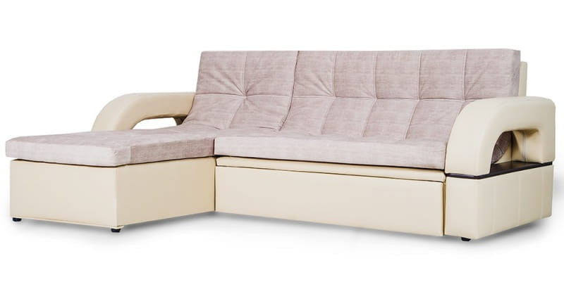 Особенности дивана: Каркас: ЛДСП, фанера, брус. Эргономичная мебель, позволяющая создать стильный интерьер. Обит качественным и плотным текстилем. Опорные элементы каркаса помогают равномерно распределять вес, благодаря чему напольное покрытие не продавливается. Механизм трансформации позволяет быстро и без особых напряжений превратить диван в удобное спальное место. Глубина дивана без учёта оттоманки: 1050 мм.