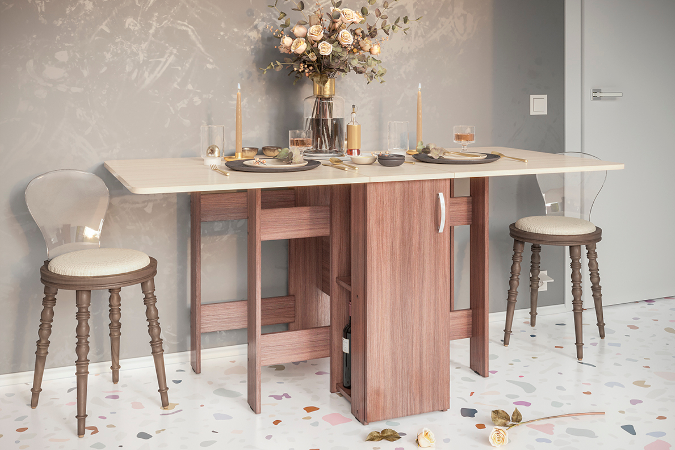 Стол-книжка 2 с баром ясень шимо темный / ясень шимо светлый